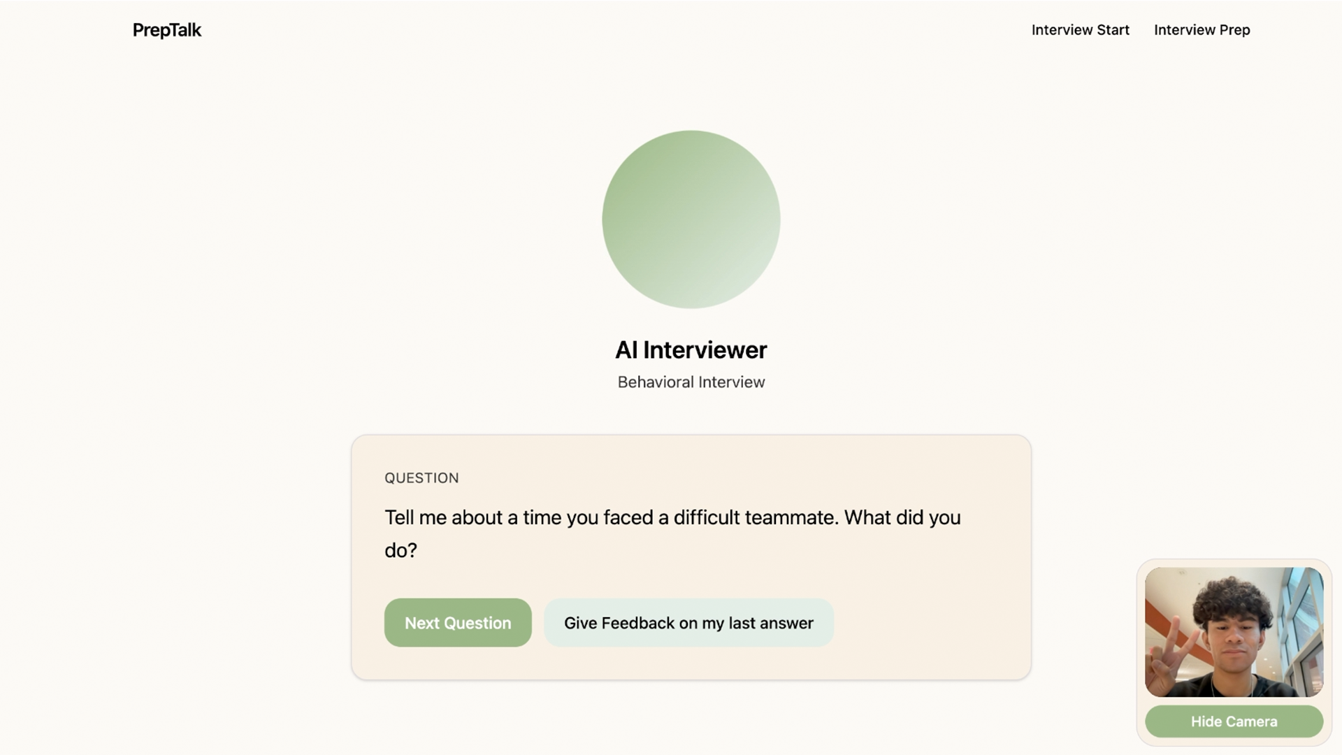Built for Gator Hack 2025, winning 1st place in the Education track, PrepTalk is an AI-powered mock interview platform that analyzes resumes, generates personalized questions, and simulates realistic interview sessions.